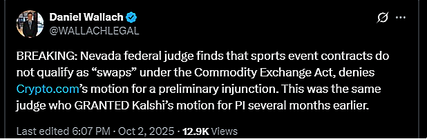 So we have full convergence here. Kalshi, the CFTC, the District Court and the Court of Appeals all agreed that sports event contracts are out of bounds. Yet, here we are with Polymarket almost 10xing its valuation in just three months.