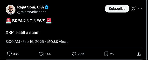 Soni lacks the Edelman-like name recognition, but he’s a vocal Bitcoin maximalist–and was nearly expelled from the CFA Institute. Some of his most controversial takes–ones you wouldn’t expect to hear from a CFA charter holder–include: