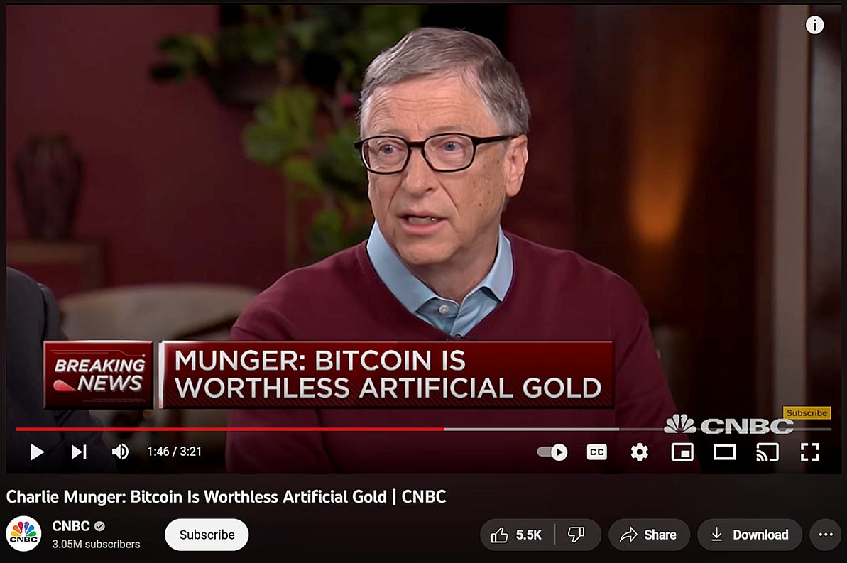 You find that whole statement unfortunate. “Remove the word investment, and Gates is absolutely, 100% spot on. He offsets all that brilliance by casually throwing the word investment in there. What does the public hear now? Oh, one of the greatest techies of our generation calls Bitcoin an investment!”