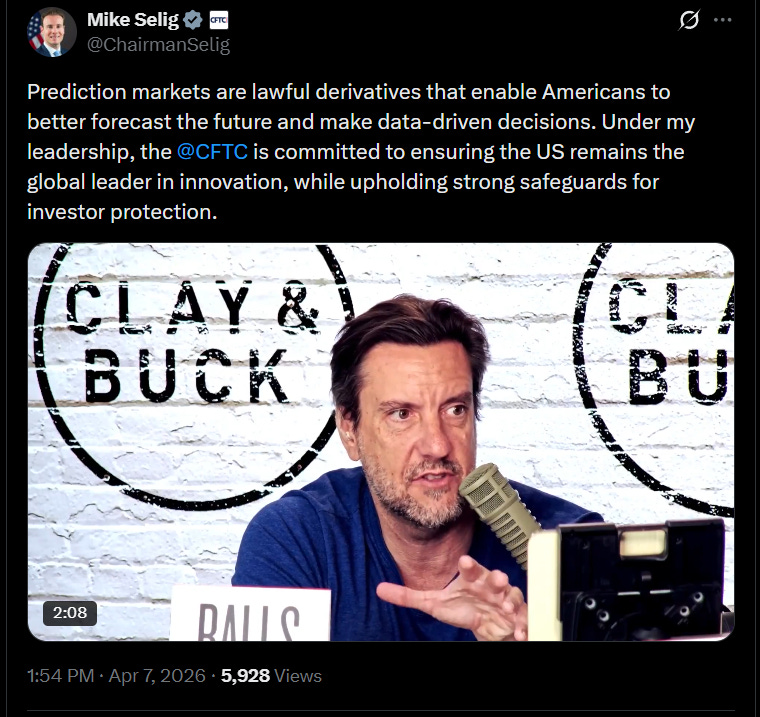 And this is where the confusion accelerates. The CFTC now appears to be adding investor protection to its mandate, even though virtually none of the products under its jurisdiction, prediction market contracts included, are true investments.