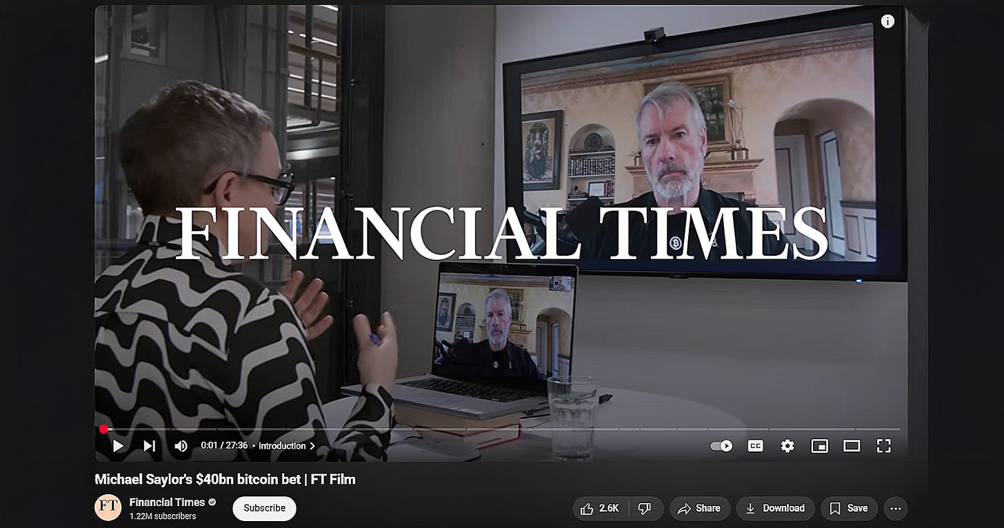 Who is Katie Martin? She is columnist and member of the editorial board at Financial Times. Yesterday, they released the documentary titled Michael Saylor's $40bn bitcoin bet: