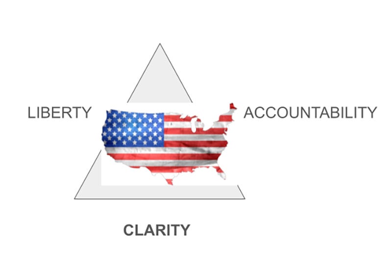 You know that we love infographics, so here we go again. The securities laws of the 1930s, and you can argue perhaps the entire country for that matter, is built on a three-legged stool. The American public has the liberty and responsibility for their actions, but only after the government makes good on its side of the deal: clarity.