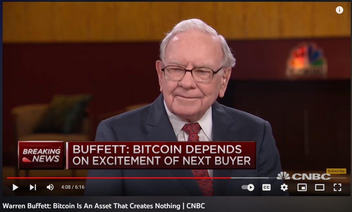 Does this sound like a person who believes in Bitcoin as an investment opportunity? Or someone who is trying to make money on people that think Bitcoin as an investment opportunity? This is what Warren Buffett thinks: